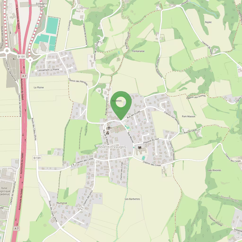 Reventin-Vaugris ist eine ländliche Gemeinde im Nordwesten des Départements Isère, gelegen auf der Ebene am Tor zum Rhônetal. Das Dorf fungiert als Verbindung zwischen landwirtschaftlichen Gebieten und großen städtischen Verkehrsachsen, in kurzer Entfernung zu Vienne und Lyon. Die Atmosphäre bleibt ruhig, geprägt von Bauernhöfen, kultivierten Parzellen und einem bescheidenen Ortskern. Es ist ein Durchgangsort, der dennoch Ankerpunkte für jene bietet, die das dauphinéische Landleben suchen.