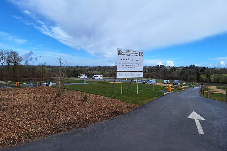 Net bij de ingang van de Vallei der Heiligen verwelkomt deze parkeerplaats auto’s, campers, touringcars en motoren, toegankelijk 24 uur per dag en 7 dagen per week. U vindt er een picknickruimte, toiletten, fastfood en een winkel met lokale producten om het ontdekken te verlengen. De site, gelegen in een groen landschap en ontworpen voor wandelingen, herbergt al bijna 200 monumentale sculpturen en streeft ernaar er duizend te plaatsen, met een project dat grotendeels wordt gefinancierd door particuliere donaties en ondersteund door tal van vrijwilligers. Een educatief parcours maakt het mogelijk meer over elke heilige te leren, terwijl de Vallei der Heiligen, een atypische plek en trots symbool van de Bretonse cultuur, een internationaal publiek aantrekt — en zich nabij lokale markten bevindt zoals Callac (woensdag), Huelgoat (donderdagmorgen) en Carhaix (zaterdag).