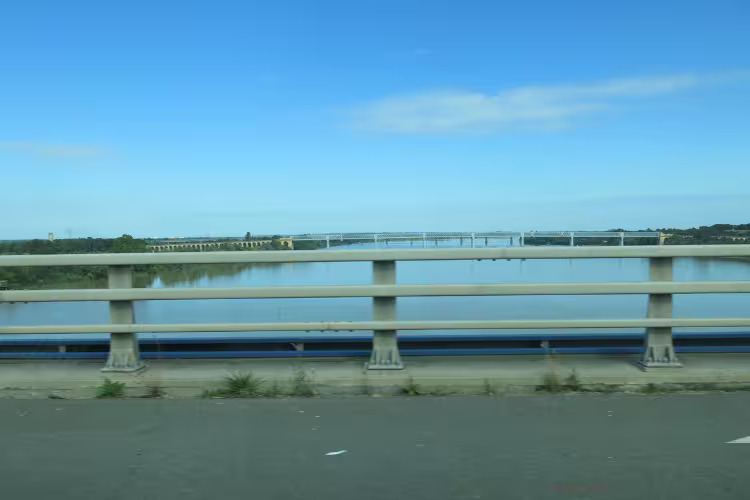 The visual landscape is dominated by the large structures spanning the river: the railway viaduct and road bridges that punctuate the horizon. These constructions offer photogenic viewpoints over the Dordogne, especially at sunrise and sunset. The banks allow observation of the piers’ structure and the integration of the bridges into the river landscape.