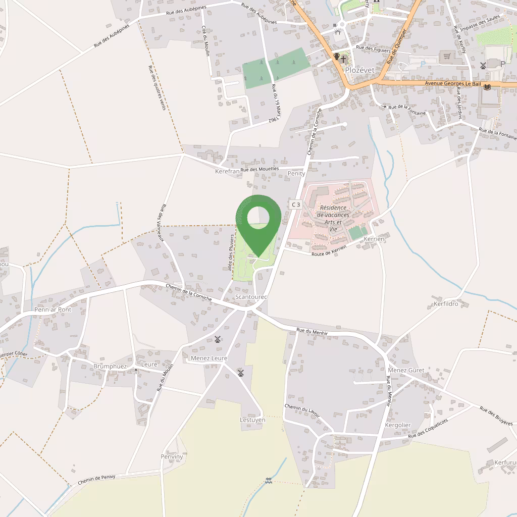Plozévet est une commune rurale et côtière du sud-ouest du Finistère, située face à la Baie d'Audierne. Le bourg conserve un caractère traditionnel breton, avec des fermes et des chemins bocagers qui conduisent rapidement vers la côte. Le relief y est doux : champs, dunes et petites falaises alternent sur un littoral sauvage. C’est une destination pour qui cherche calme, grand air et patrimoine local.