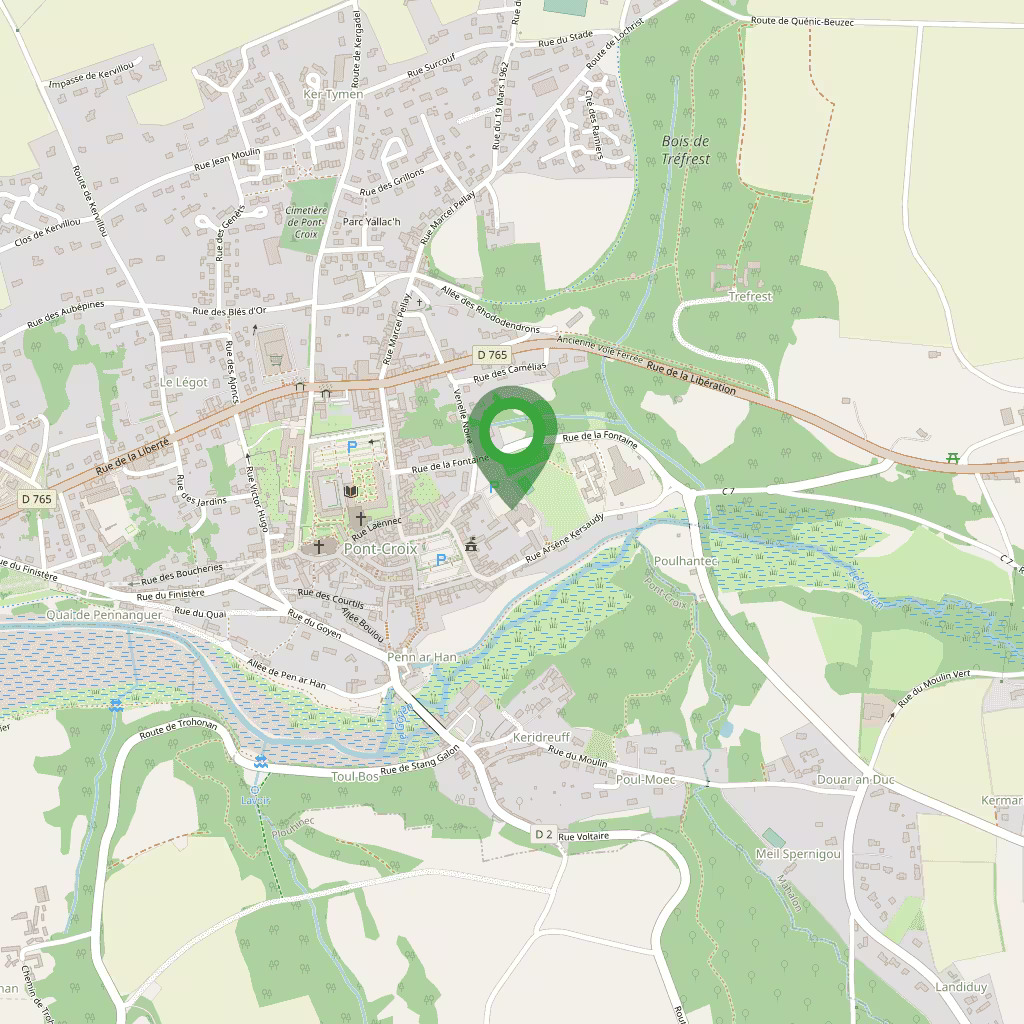 Il volto di Pont-Croix è segnato dalla presenza della Collegiata di Nostra Signora di Roscudon, imponente edificio gotico che domina il centro. I vicoli rivelano case di pietra, stipiti scolpiti e tracce di un passato commerciale legato al mare. Il piano urbano conserva la logica medievale, offrendo una passeggiata facile attraverso i luoghi storici.
