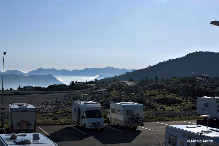Arette est un village béarnais niché dans la vallée d’Aspe, au pied des crêtes pyrénéennes. Le paysage combine prairies d’altitude, forêts et sommets abrupts. La commune sert de porte d’accès à des itinéraires de montagne et à une station de sports d’hiver. On y ressent encore une forte identité rurale, marquée par l’élevage et les traditions locales.
