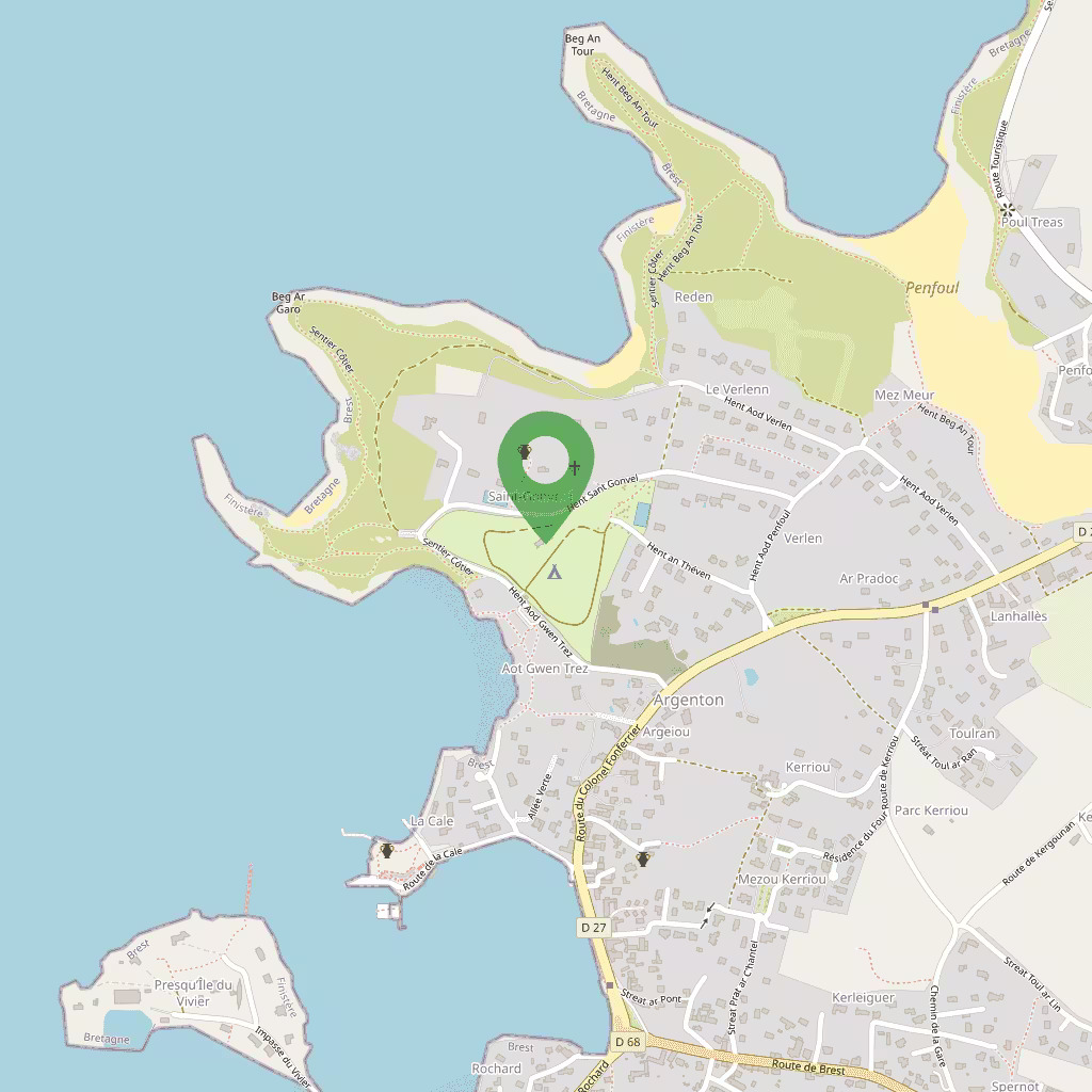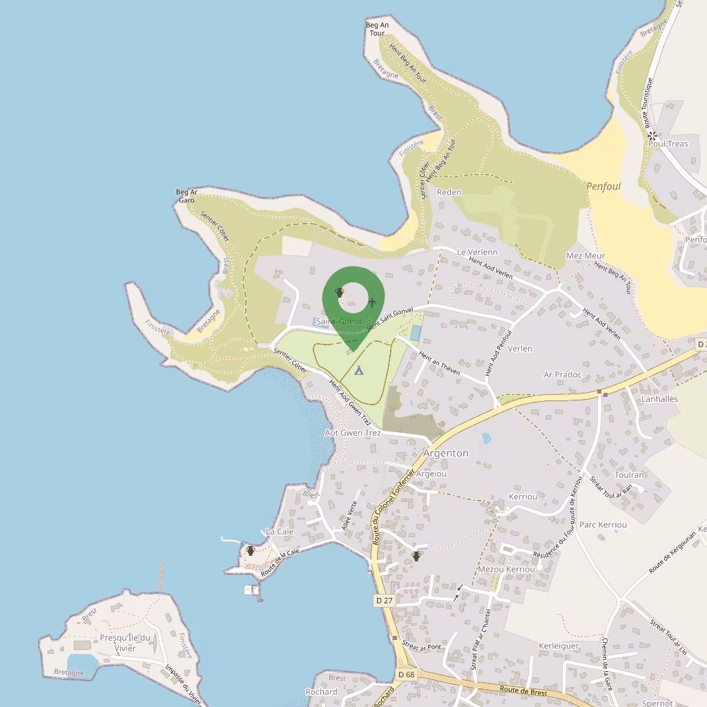 La costa ofrece panoramas cambiantes sobre la Mer d'Iroise, con acantilados bajos y ensenadas donde se suceden arena y rocas. La luz y las mareas esculpen el litoral; las aves marinas y los lodos atraen a los observadores. El relieve es suave, propicio para paseos tranquilos.